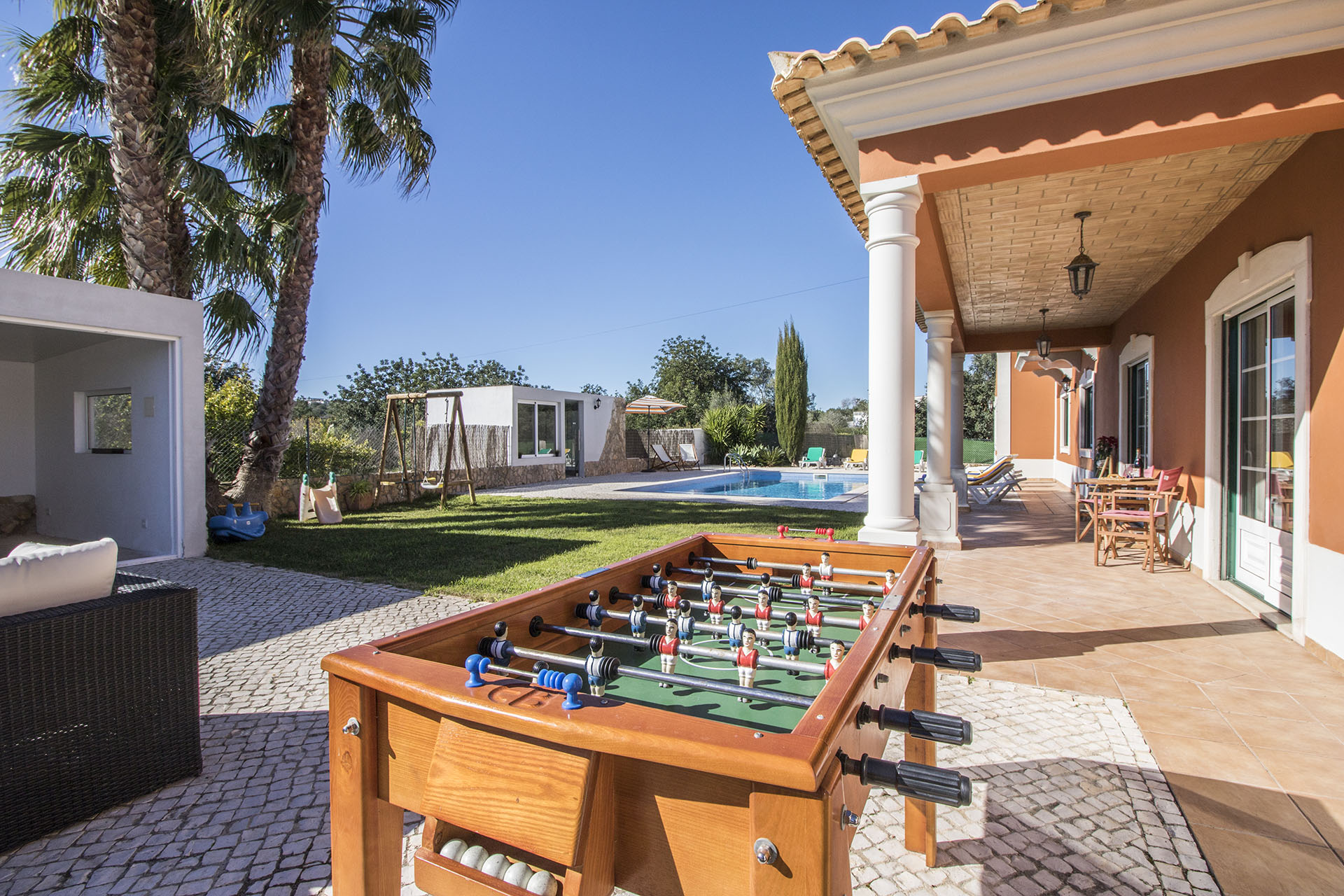 Located in a tranquil habitational area, near Almancil, Loulé and just 10 minutes away from the beaches, this 3-bedroom house has a private pool, a cosy and private outdoor space and a games room with a pool table and a summer bar. Great to spend some quality time with family or friends. There are 3 … Continue reading “Oliveira House”